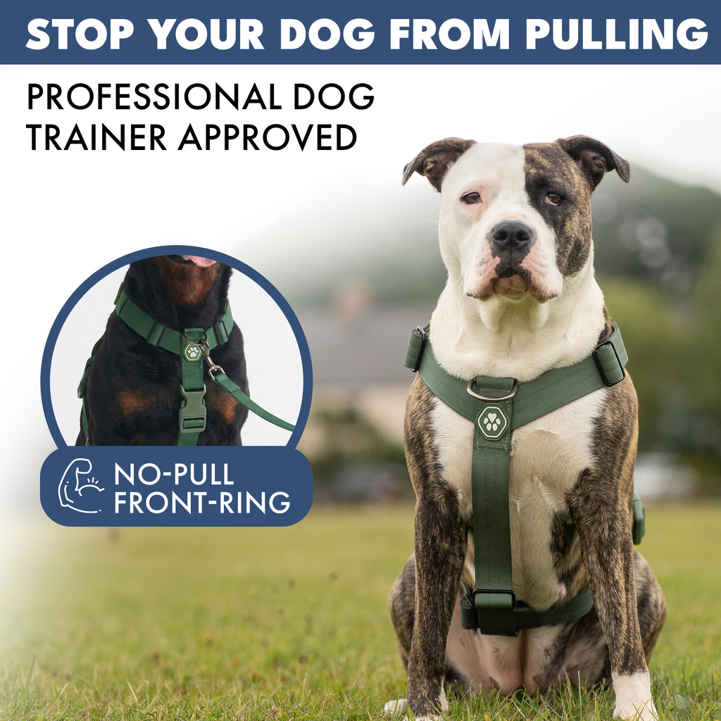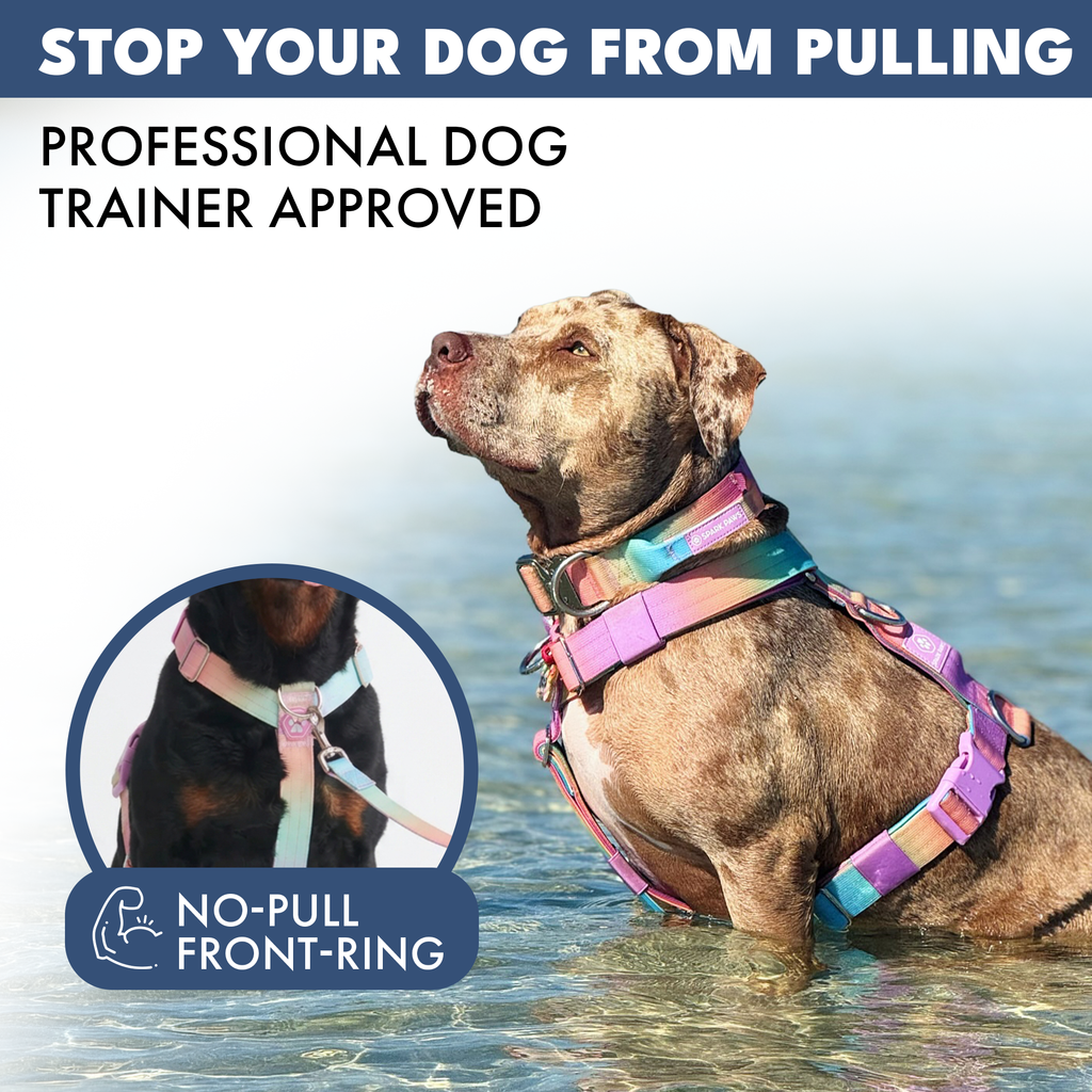 R: Nuestro arnés para perros sin tirones está diseñado para desalentar a tu perro de jalar la correa durante los paseos. El anillo D frontal funciona redirigiendo la fuerza del tirón de tu perro hacia los lados o la parte frontal del arnés, en lugar de permitir que tire hacia adelante. También puedes usar el anillo D trasero para caminar todos los días o el anillo D trasero para permitir que corra libremente.