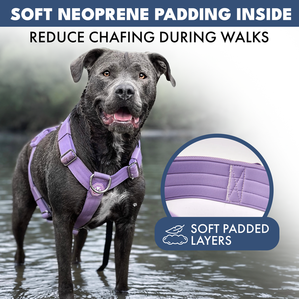 - Ajustable en 3 direcciones - El arnés es ajustable alrededor del cuello, el torso y el área de la cintura, puede adaptarse cómodamente a razas de pecho ancho