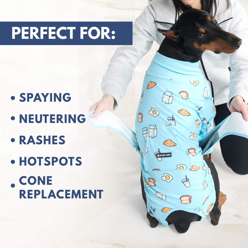 Olvida el „collar de la vergüenza“ para una recuperación más cómoda y sin estrés. Nuestro body quirúrgico proporciona una barrera suave y segura que protege las heridas mientras permite que tu perro se mueva, coma y duerma con normalidad.