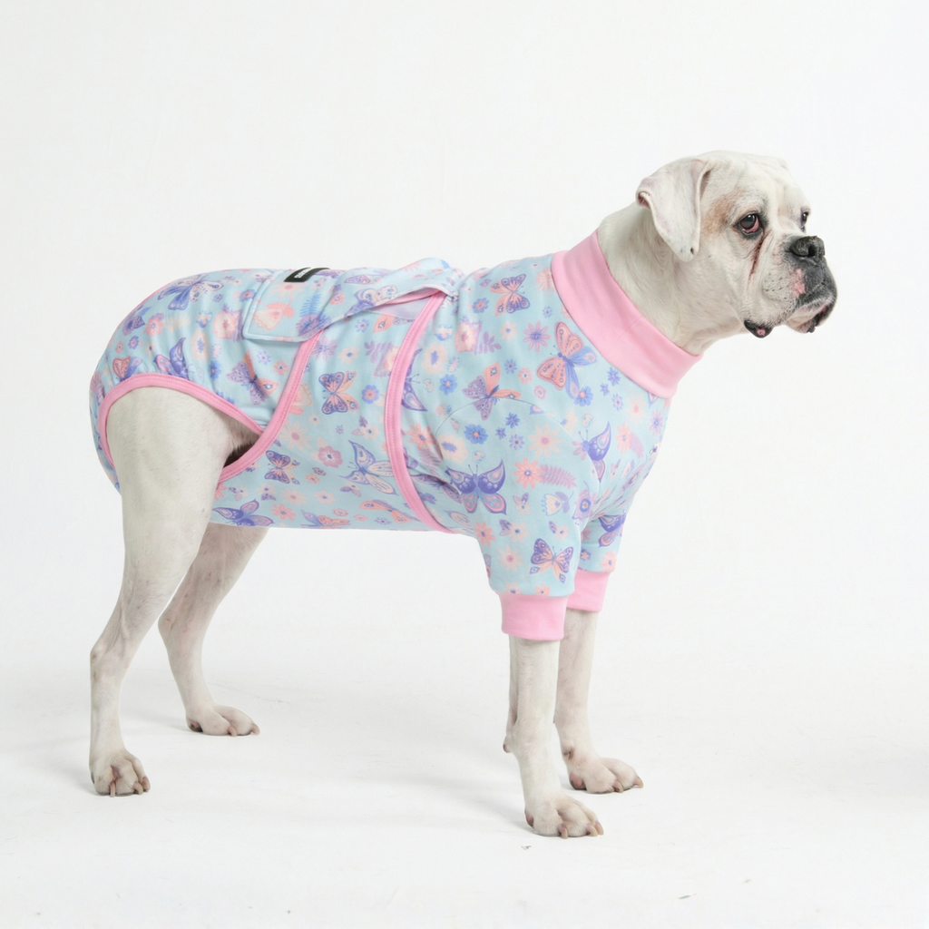 Olvida el „collar de la vergüenza“ para una recuperación más cómoda y sin estrés. Nuestro body quirúrgico proporciona una barrera suave y segura que protege las heridas mientras permite que tu perro se mueva, coma y duerma con normalidad.