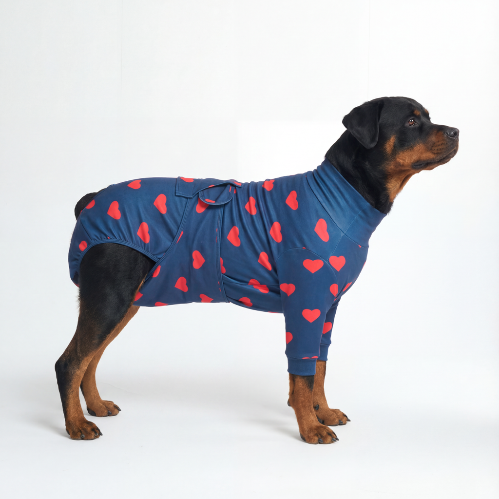 Olvida el „collar de la vergüenza“ para una recuperación más cómoda y sin estrés. Nuestro body quirúrgico proporciona una barrera suave y segura que protege las heridas mientras permite que tu perro se mueva, coma y duerma con normalidad.