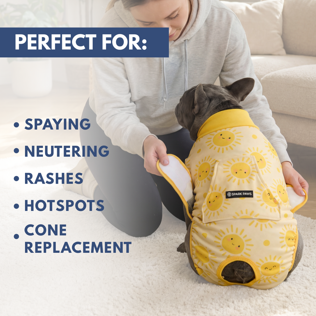 Olvida el „collar de la vergüenza“ para una recuperación más cómoda y sin estrés. Nuestro body quirúrgico proporciona una barrera suave y segura que protege las heridas mientras permite que tu perro se mueva, coma y duerma con normalidad.