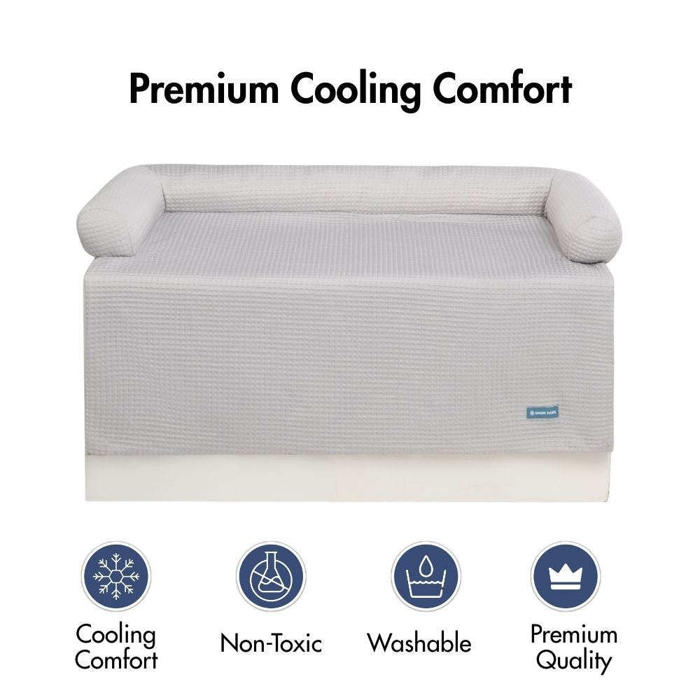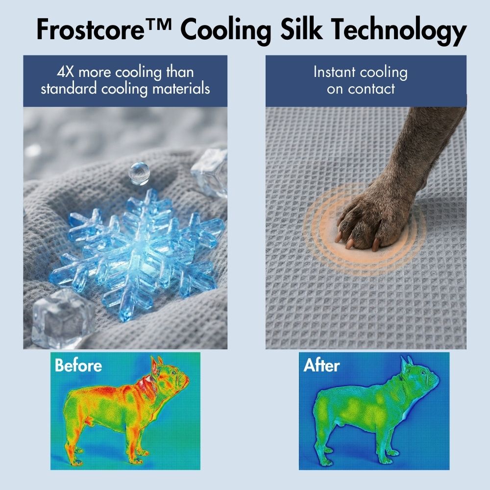 Fabricada con tejido refrigerante Frostcore™, la superficie disipa el calor al contacto para ofrecer una sensación de frescor instantánea, ideal para los días calurosos.