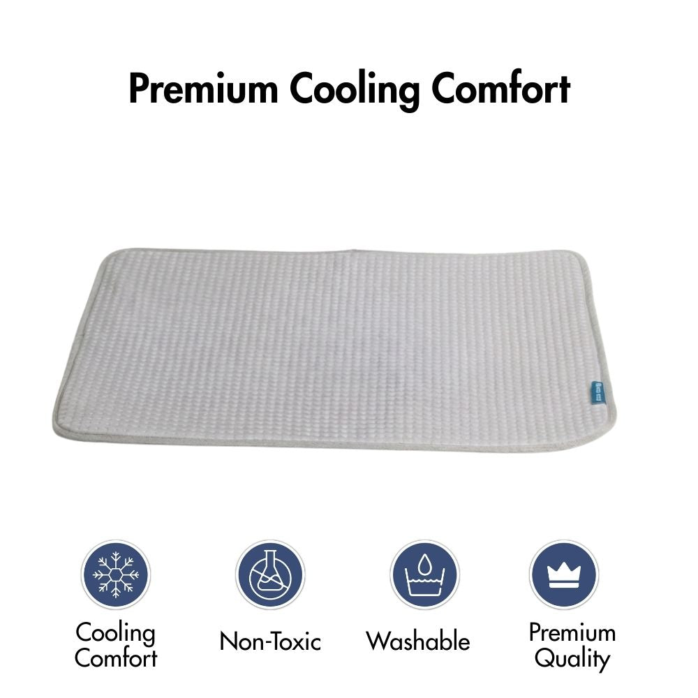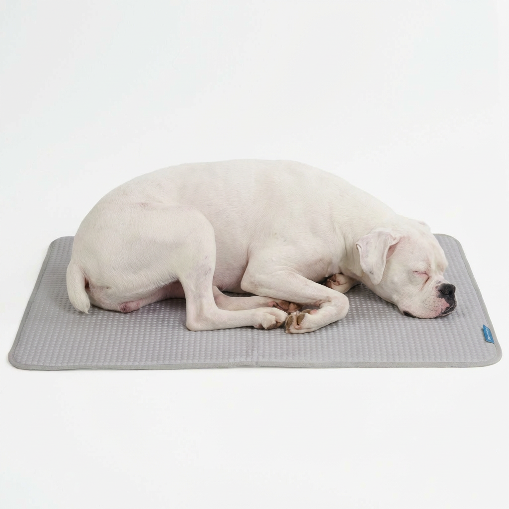 Fabricada con tejido refrigerante Frostcore™, la superficie disipa el calor al contacto para ofrecer una sensación de frescor instantánea y reconfortante, ideal para los días calurosos.